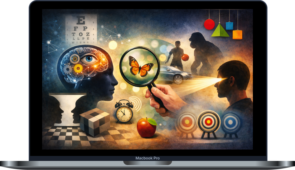 Perception and attention are limited and selective resources: not all environmental stimuli are processed, and the cognitive system filters information according to relevance, intensity, context, and cognitive load. The senses register physical energy, yet perceptual experience is subjective and often prone to distortion. Attention may be conscious or unconscious, focused or broad, and is influenced both by stimulus-driven properties (bottom-up processes) and by the user’s goals and expectations (top-down processes). Understanding these mechanisms is essential for effective system design: reducing cognitive load, limiting options, emphasizing relevant information, and using motion and salient stimuli judiciously all contribute to a clear, predictable, and cognitively aligned user experience.