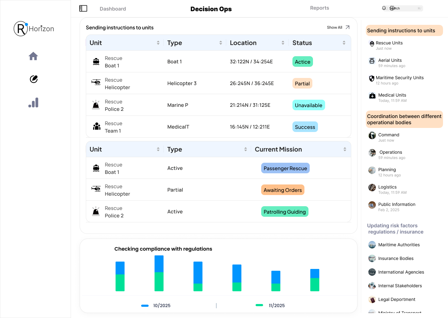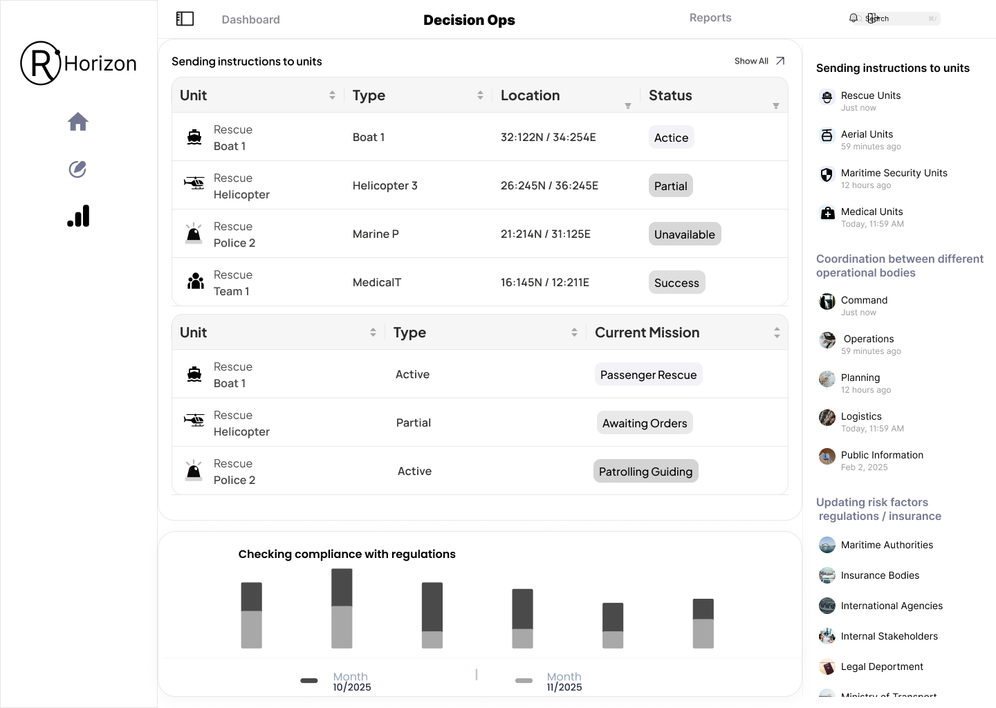 - Dispatching instructions to units