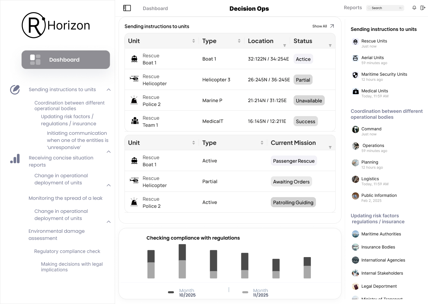 A central HUB that consolidates all operational activity following a maritime event — from initial detection and response through full return to normal operations.