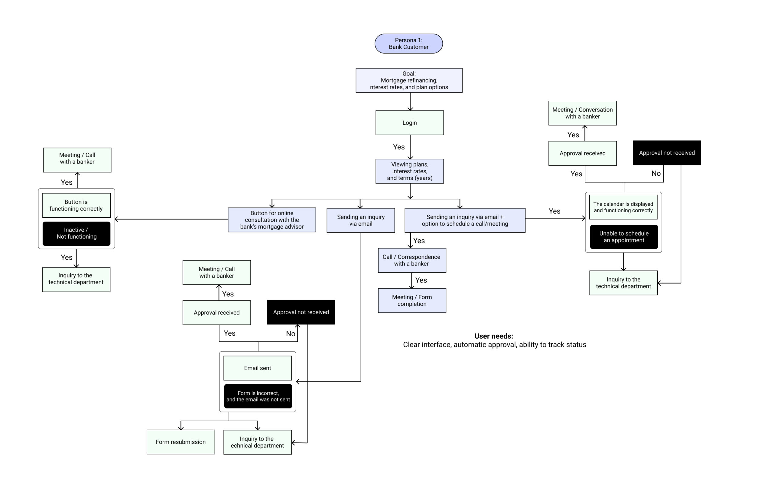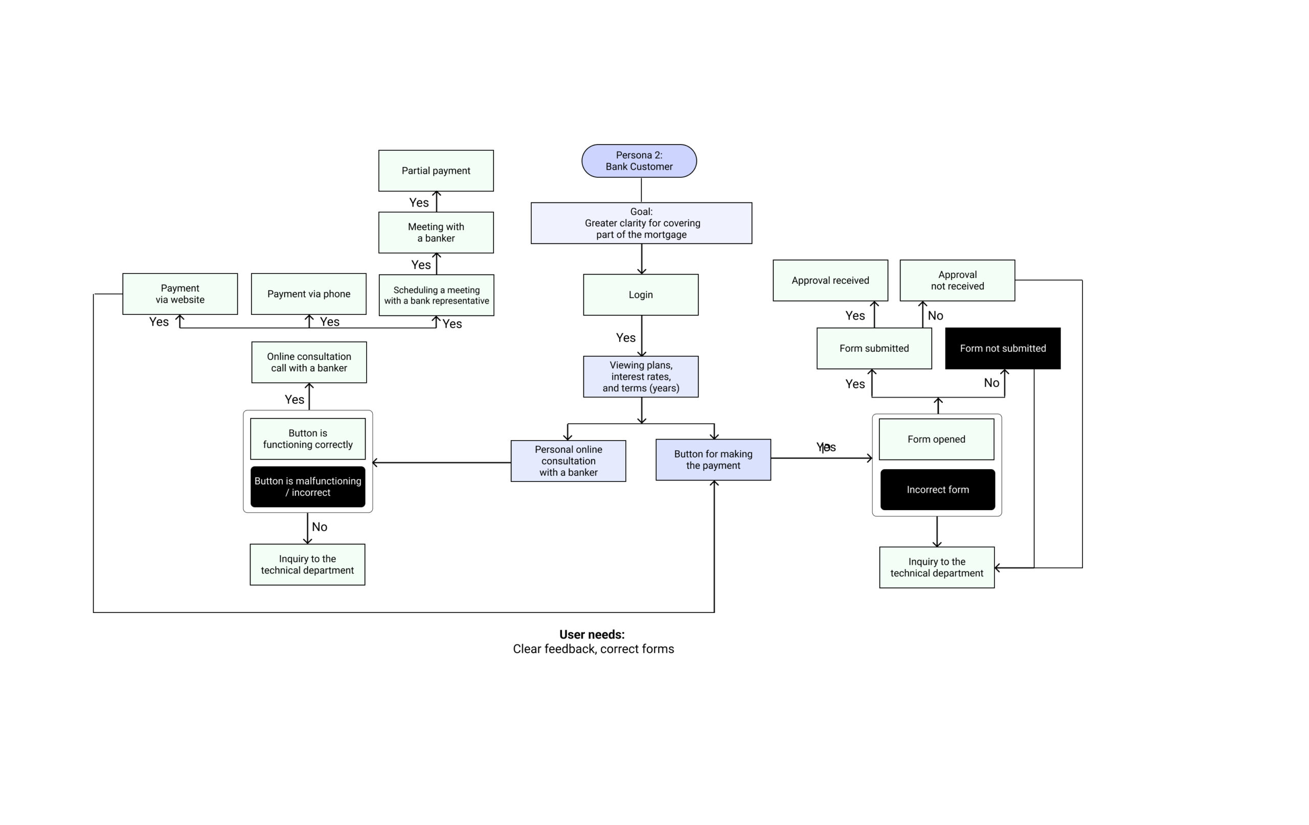 Usage scenario for a banking system that teaches the user to use the results filter to achieve the best outcomes.